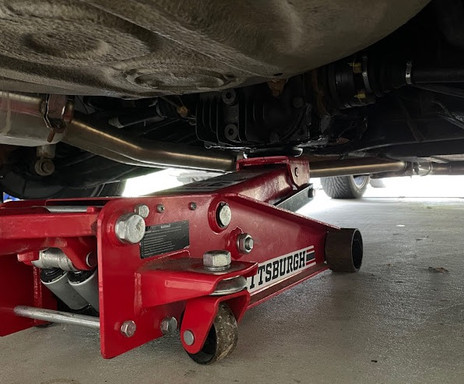 2. Then, with a floor jack, raise up the rear of the car from the differential. No, this will not harm the car in any way during the ten minutes it takes to perform this test.